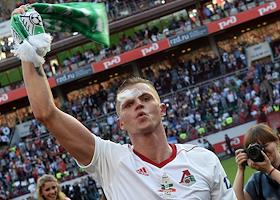 РОСГОССТРАХ Чемпионат России по футболу 2017/2018. 29-й тур. Матч между командами "Локомотив" (Москва) и "Зенит" (Санкт Петербург) прошел на стадионе "РЖД Арена". Игрок команды "Локомотив" Дмитрий Тарасов после матча.