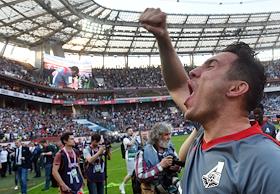 РОСГОССТРАХ Чемпионат России по футболу 2017/2018. 29-й тур. Матч между командами "Локомотив" (Москва) и "Зенит" (Санкт Петербург) прошел на стадионе "РЖД Арена". Награждение команды "Локомотив" Кубком Чемпионата России по футболу во время церемонии награждения.