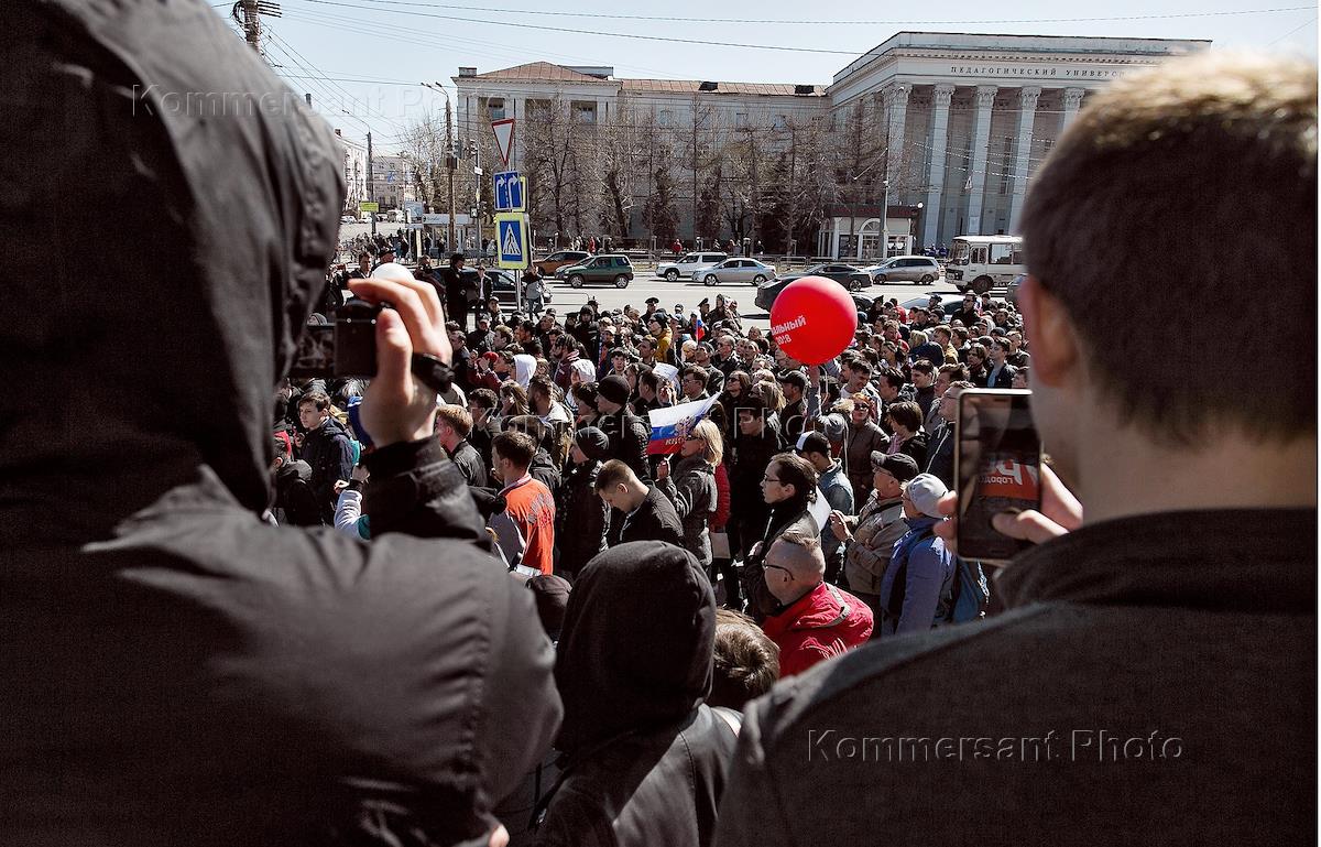 Несанкционированная акция протеста сторонников оппозиционера Алексея Навального "Он нам не царь" в Челябинске.