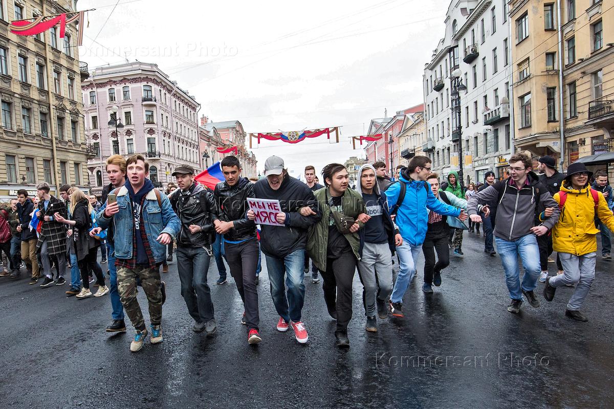 Несанкционированная акция протеста сторонников оппозиционера Алексея Навального "Он нам не царь" в Санкт-Петербурге.