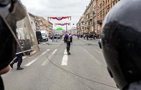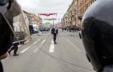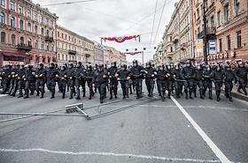 Несанкционированная акция протеста сторонников оппозиционера Алексея Навального "Он нам не царь" в Санкт-Петербурге. Сотрудники полиции в оцеплении во время акции.