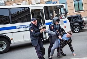 Несанкционированная акция протеста сторонников оппозиционера Алексея Навального "Он нам не царь" в Санкт-Петербурге. Задержание участников акции.