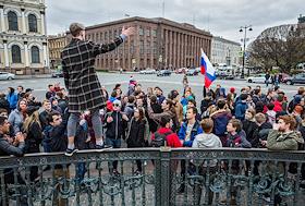 Несанкционированная акция протеста сторонников оппозиционера Алексея Навального "Он нам не царь" в Санкт-Петербурге.