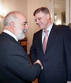 Председатель совета директоров "Ренова" Виктор Вексельберг (слева) и президент "ЕвразХолдинга" Александр Абрамов (справа) на XIV съезде Российского союза промышленников и предпринимателей (работодателей). Съезд прошел в Колонном зале Дома союзов.
