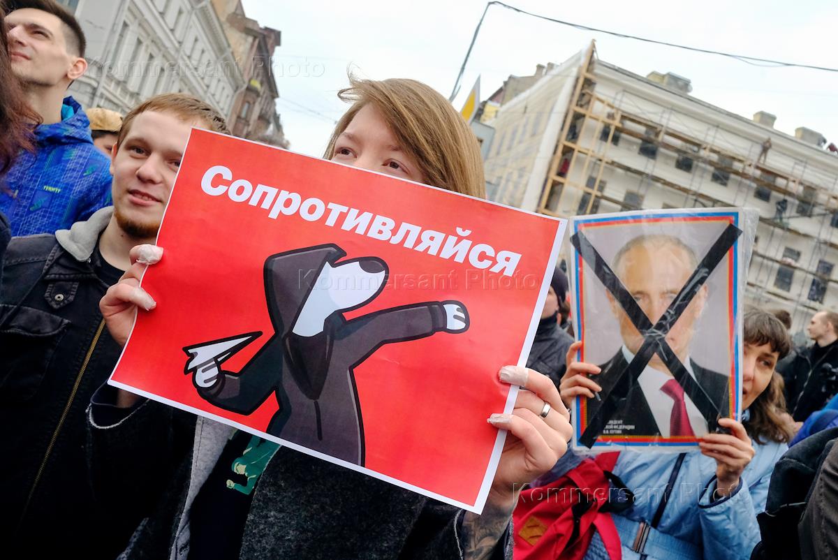 Несанкционированная акция протеста сторонников оппозиционера Алексея Навального "Он нам не царь" Санкт-Петербурге.