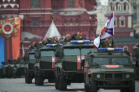 Генеральная репетиция военного парада, посвященного 73-й годовщине Победы в Великой Отечественной войне, прошла на Красной площади. Бронеавтомобиль "Тигр-М" (справа) и бронеавтомобили "Тайфун-А" во время репетиции.
