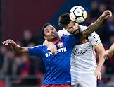 РОСГОССТРАХ Чемпионат России по футболу 2017/2018. 29-й тур. Матч между командами ПФК "ЦСКА" (Москва) и "Арсенал" (Тула) прошел на стадионе "ВЭБ-Арена". Игрок команды "Арсенал" Казимир Берхамов (справа) и игрок команды ЦСКА Кристиян Бистрович (слева) во время матча.