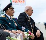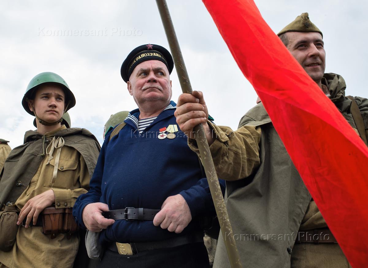 Реконструкция боя времен Великой Отечественной войны (ВОВ) на фестивале "Высота Горная". Ветераны ВОВ на фестивале.