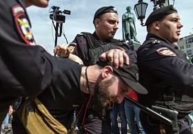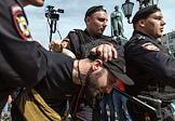 Несанкционированная акция протеста сторонников оппозиционера Алексея Навального "Он нам не царь" прошла на Пушкинской площади. Сотрудники правоохранительных органов во время акции.