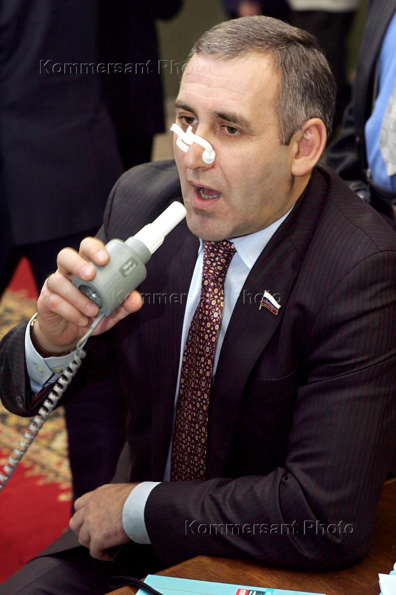 Член Комитета Государственной Думы России по труду и социальной политике Сергей Неверов во время медицинского осмотра (проверки легких) в фойе Государственной Думы России.
