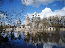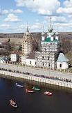 Виды села Холуй во время весеннего разлива реки Теза. Храмовый комплекс - Троицкая и Введенская церкви.