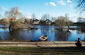 Виды села Холуй во время весеннего разлива реки Теза.