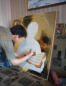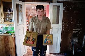 Жители села Холуй. Иконописец за работой.