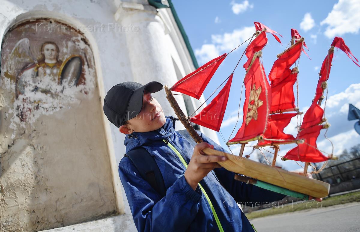 Акция молодых художников по возрождению древней традиции села Холуй – расписывать лодки и весла, использующиеся во время весеннего разлива реки Теза. Местные жители во время праздничного спуска лодок на воду.