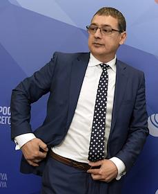 Пресс-конференция, посвященная турниру серии Гран-при по фехтованию "Московской сабле", который пройдет с 11 по 13 мая 2018 года на Малой арене ВТБ "Ледовый дворец". Пресс-конференция состоялась в Международном мультимедийном пресс-центре МИА "Россия сегодня". Первый заместитель генерального директора Дирекции спортивных и зрелищных мероприятий города Москвы Александр Буздаков (справа) во время пресс-конференции.