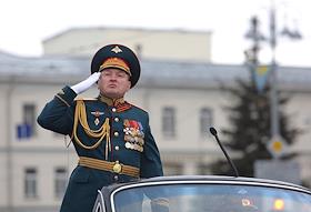 Парад войск Екатеринбургского гарнизона, посвященный 73-й годовщине Победы в Великой Отечественной войне, прошел на площади 1905 года. Командующий войсками ЦВО Александр Лапин во время парада.