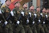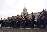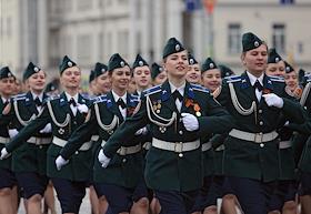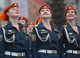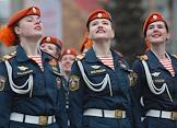 Парад войск Екатеринбургского гарнизона, посвященный 73-й годовщине Победы в Великой Отечественной войне, прошел на площади 1905 года. Девушки военнослужащие МЧС России во время парада.