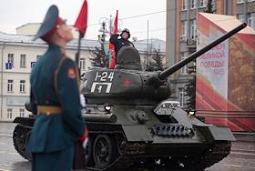 Празднование 73-ей годовщины Победы в Великой Отечественной войне. Военный парад войск Екатеринбургского гарнизона на Площади 1905 года.