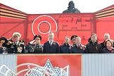 Военный парад, посвященный 73-й годовщине Победы в Великой Отечественной войне, прошел на площади Ленина. Мэр Новосибирска Анатолий Локоть (четвертый справа) во время парада.