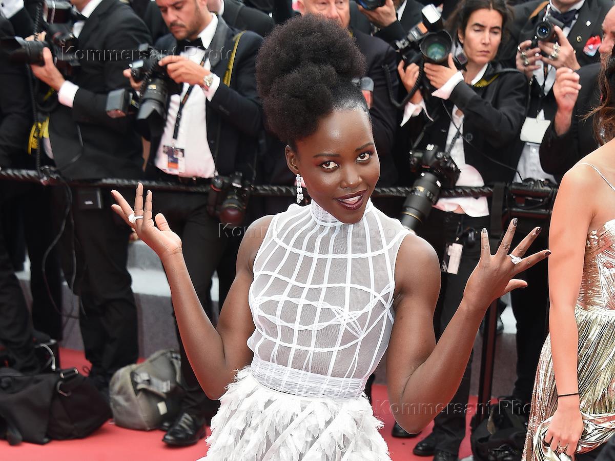 71-й Каннский международный кинофестиваль 2018 / Festival de Cannes 2018. День третий. Премьера фильма "Удовольствие, любовь и быстрый бег" (Sorry Angel / Plaire, Aimer Et Courir Vite). Американская актриса Люпита Нионго перед премьерой.