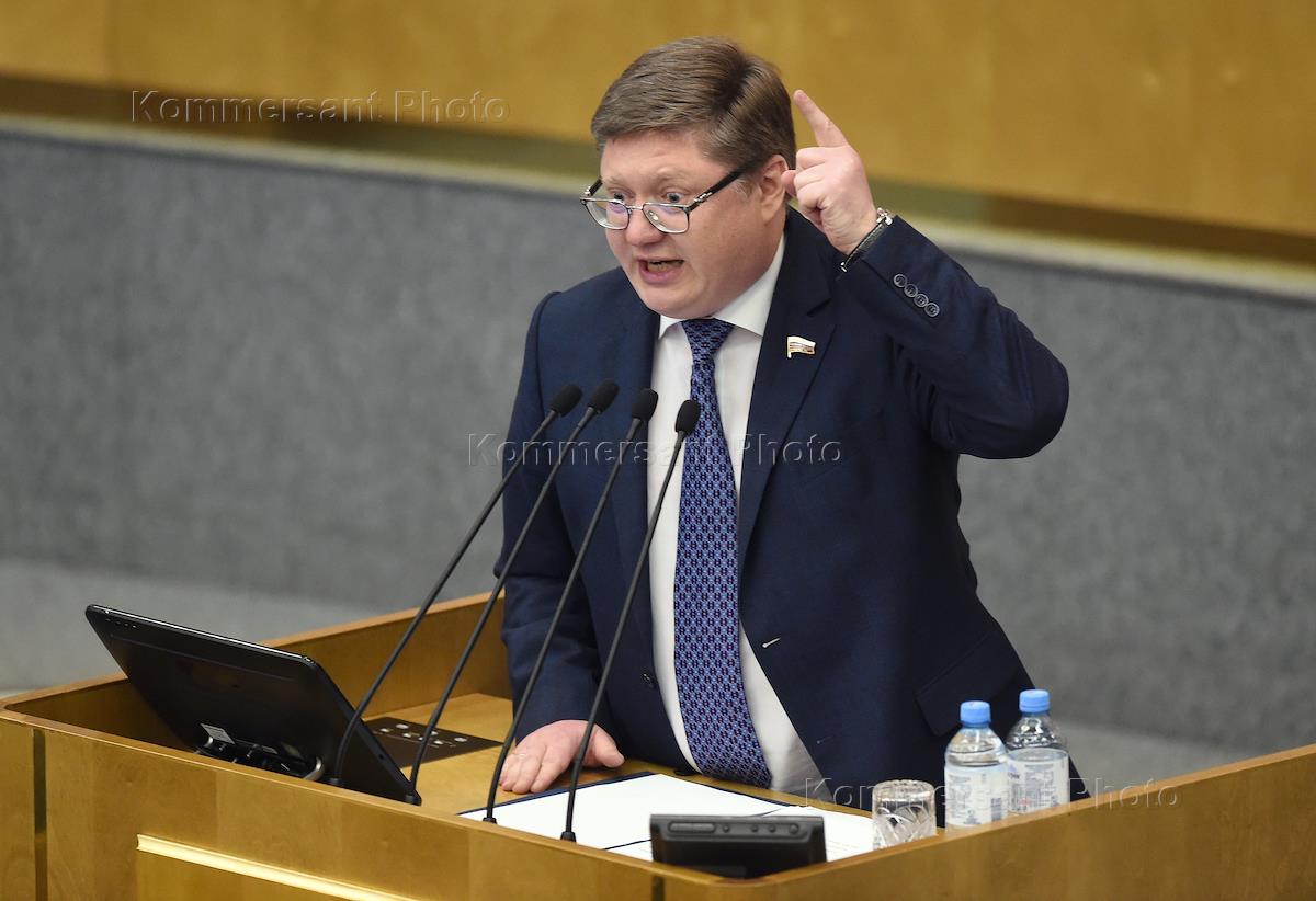 Пленарное заседание Государственной думы (ГД) России. Член комитета ГД России по бюджету и налогам Андрей Исаев во время заседания.