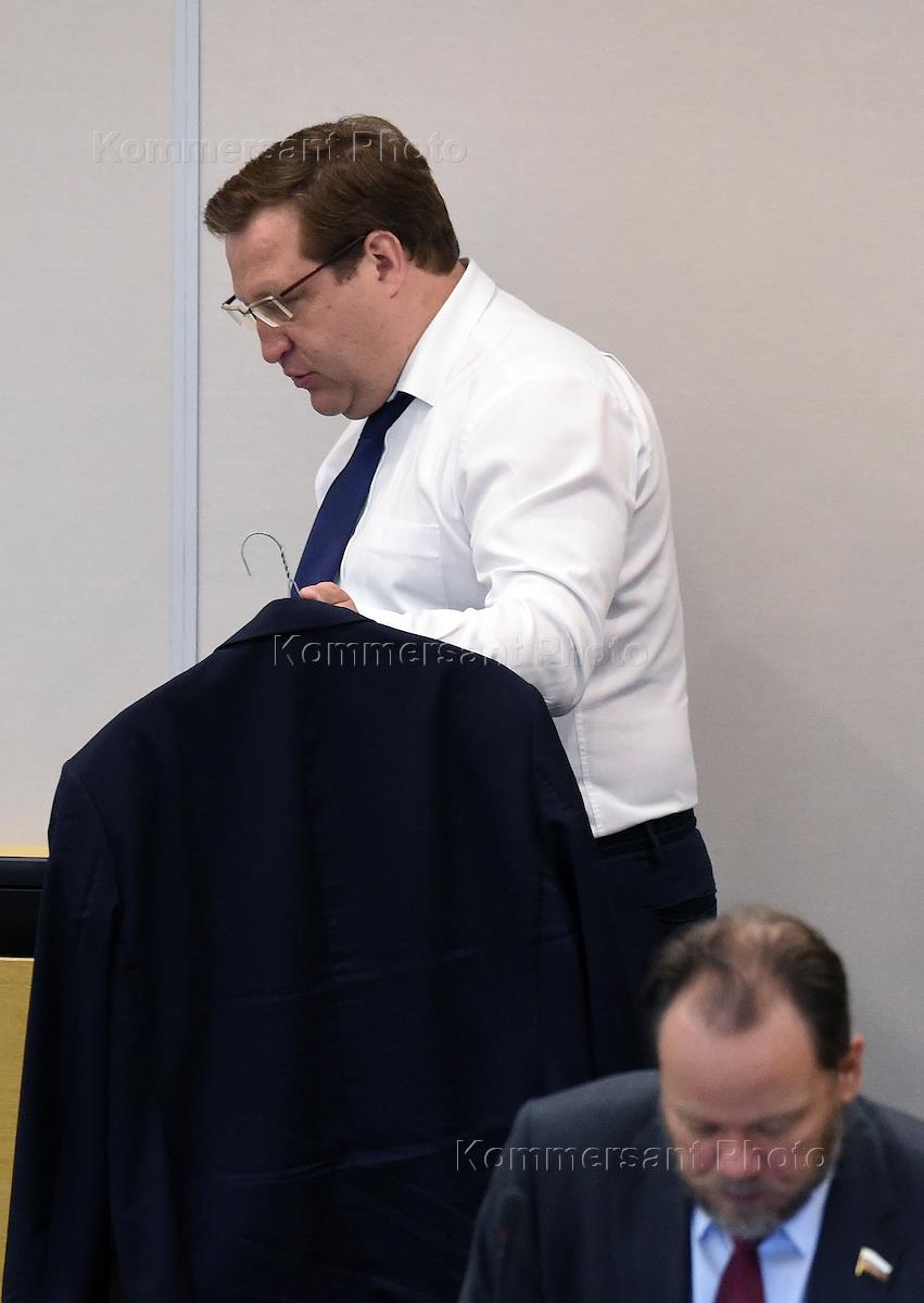 Пленарное заседание Государственной думы (ГД) России. Член комитета ГД России по бюджету и налогам Дмитрий Юрков перед началом заседания.