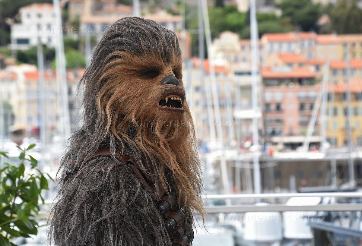 71-й Каннский международный кинофестиваль 2018 / Festival de Cannes 2018. День восьмой. Персонаж кинофильма "Звездные войны" Чубакка (в центре) во время фотосессии.