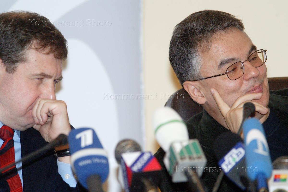 Заседание "круглого стола" на тему: "На что и когда потратить Стабфонд", организованное газетой "КоммерсантЪ" и Высшей школой экономики (ВШЭ), прошло в здании ВШЭ. Советник президента России по экономическим вопросам Андрей Илларионов (слева) и корреспондент ИД "КоммерсантЪ" Николай Вардуль (справа) во время заседания.