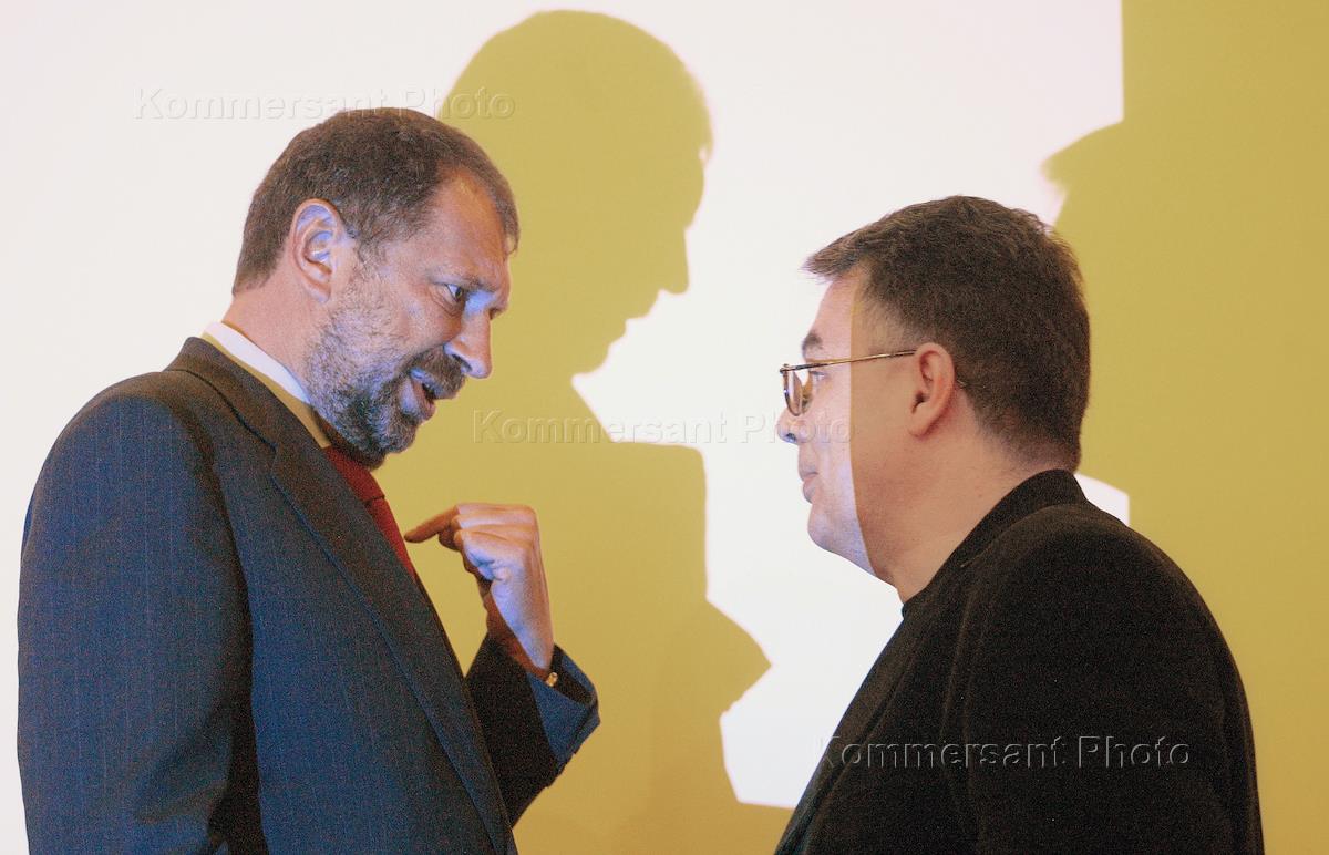 Заседание "круглого стола" на тему: "На что и когда потратить Стабфонд", организованное газетой "КоммерсантЪ" и Высшей школой экономики (ВШЭ), прошло в здании ВШЭ. Советник президента России по экономическим вопросам Андрей Илларионов (слева) и корреспондент ИД "КоммерсантЪ" Николай Вардуль (справа) во время заседания.