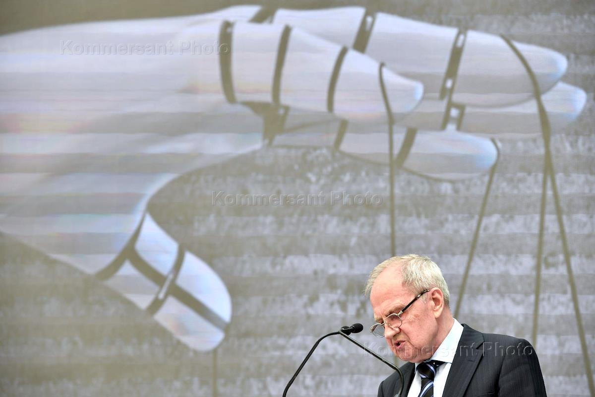 VIII Петербургский международный юридический форум прошел в Главном штабе Государственного Эрмитажа. Председатель Конституционного суда России Валерий Зорькин во время чтения лекции на форуме.