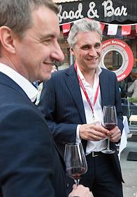 VIII Петербургский международный юридический форум. Вечеринка Legal Street в рамках культурной программы форума прошла на улице Рубинштейна. Управляющий партнер юридической фирмы "Борениус" Андрей Гусев (справа) во время вечеринки.