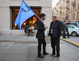 VIII Международный юридический форум. Культурная программа форума. Вечеринка Legal Street прошла на улице Рубинштейна. Юристы Вячеслав Еременко (слева) и Наталья Тарло (справа) на вечеринке.