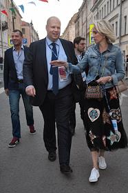 VIII Петербургский международный юридический форум. Вечеринка Legal Street в рамках культурной программы форума прошла на улице Рубинштейна. Исполняющий обязанности министра юстиции России Александр Коновалов (в центре) во время вечеринки.
