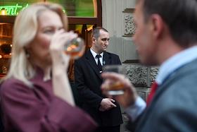 VIII Петербургский международный юридический форум. Вечеринка Legal Street в рамках культурной программы форума прошла на улице Рубинштейна. Сотрудник службы охраны во время вечеринки.