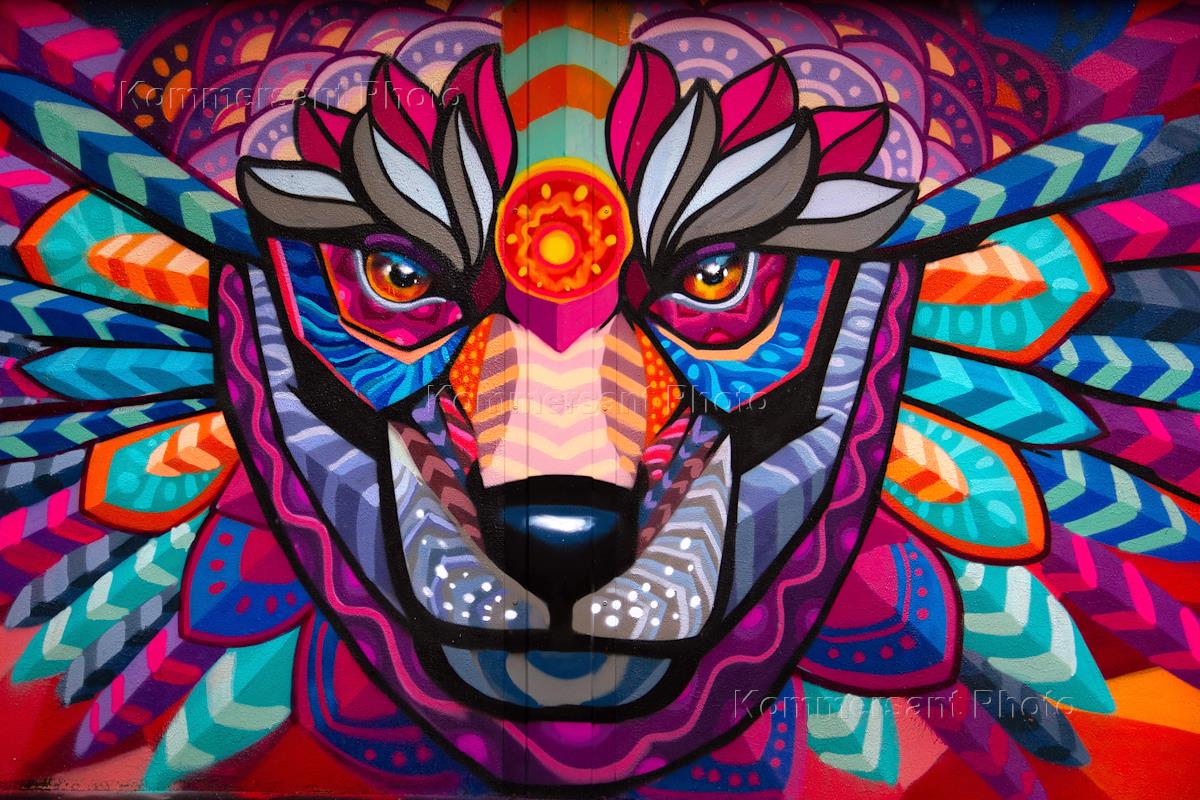 Арт-граффити проект "Футбольные континенты" прошел в в спортивном комплексе "Лужники". Восемь художников из семи стран пяти континентов расписали семь трансформаторных подстанций ПАО "МОЭСК", представив зрителям уникальные граффити, посвященные футболу. Художник Mue Bon.
