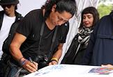 Арт-граффити проект "Футбольные континенты" прошел в в спортивном комплексе "Лужники". Восемь художников из семи стран пяти континентов расписали семь трансформаторных подстанций ПАО "МОЭСК", представив зрителям уникальные граффити, посвященные футболу. Слева направо: художники Mue Bon, Farid Rueda и Марина Зуми.