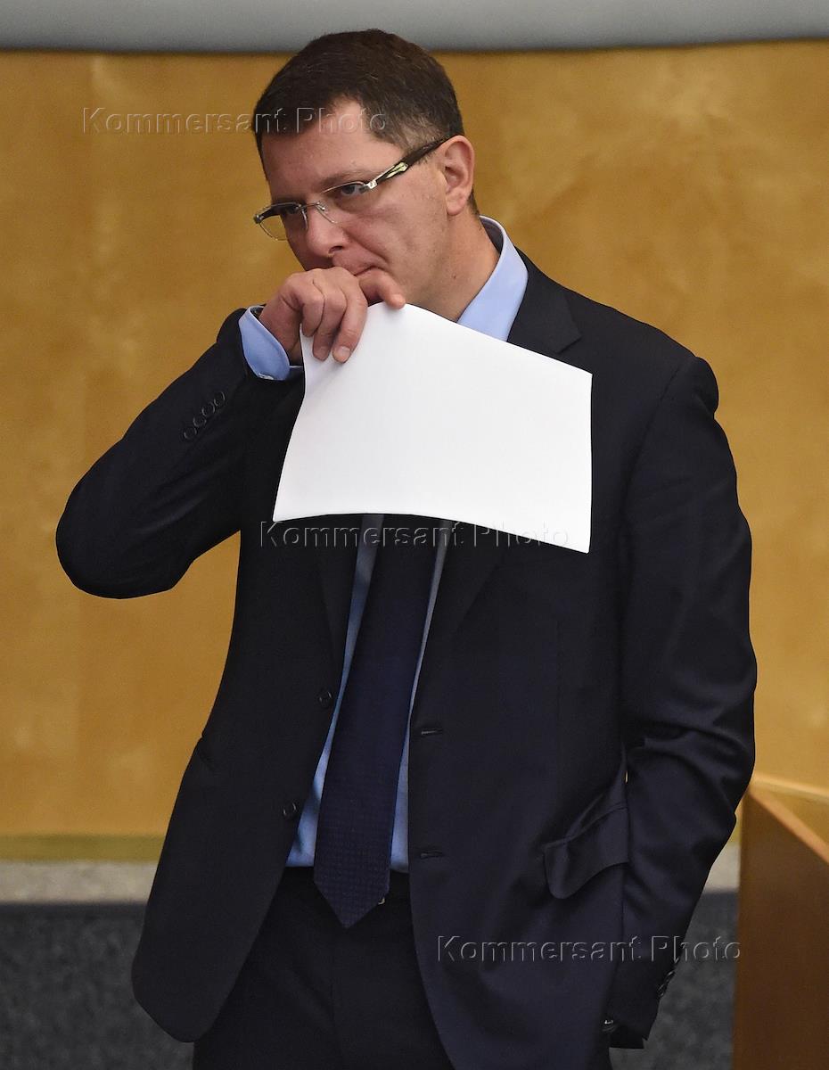 Пленарное заседание Государственной думы (ГД) России. Председатель комитета ГД России по бюджету и налогам Андрей Макаров во время заседания.