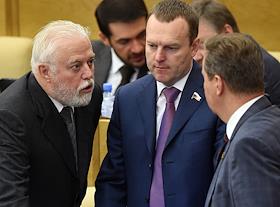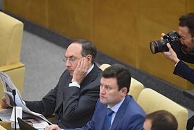 Пленарное заседание Государственной думы (ГД) России. Председатель комитета ГД России по экономической политике, промышленности, инновационному развитию и предпринимательству Сергей Жигарев (слева) во время заседания.