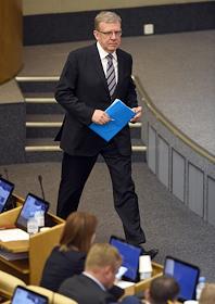 Пленарное заседание Государственной думы (ГД) России. Кандидат на пост председателя Счетной палаты России, председатель совета фонда "Центр стратегических разработок" Алексей Кудрин во время утверждения своей кандидатуры на думском заседании.