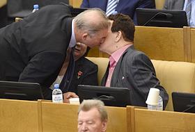 Пленарное заседание Государственной думы (ГД) России. Заместитель председателя комитета ГД России по международным делам Анатолий Карпов (слева) и председатель комитета ГД России по делам Содружества Независимых Государств, евразийской интеграции и связям с соотечественниками Леонид Калашников (справа) во время заседания.
