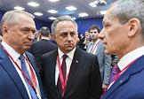 XXII Петербургский международный экономический форум (ПМЭФ). Презентация результатов национального рейтинга состояния инвестиционного климата в регионах России. Губернатор Тульской области Алексей Дюмин (слева), президент Татарстана Рустам Минниханов (в центре) и губернатор Санкт-Петербурга Георгий Полтавченко (справа) на презентации.
