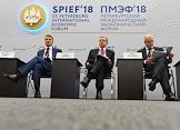 XXII Петербургский международный экономический форум (ПМЭФ). Презентация результатов национального рейтинга состояния инвестиционного климата в регионах России. Слева направо: министр строительства и жилищно-коммунального хозяйства Владимир Якушев, президент Татарстана Рустам Минниханов и губернатор Санкт-Петербурга Георгий Полтавченко на презентации.