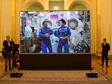 Сеанс прямой связи премьер-министра Японии Синдзо Абэ и президента России Владимира Путина с Международной космической станцией (МКС) в Кремле.