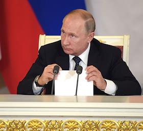 Церемония подписания совместных документов по итогам российско-японских переговоров. Президент России Владимир Путин во время церемонии в Кремле.