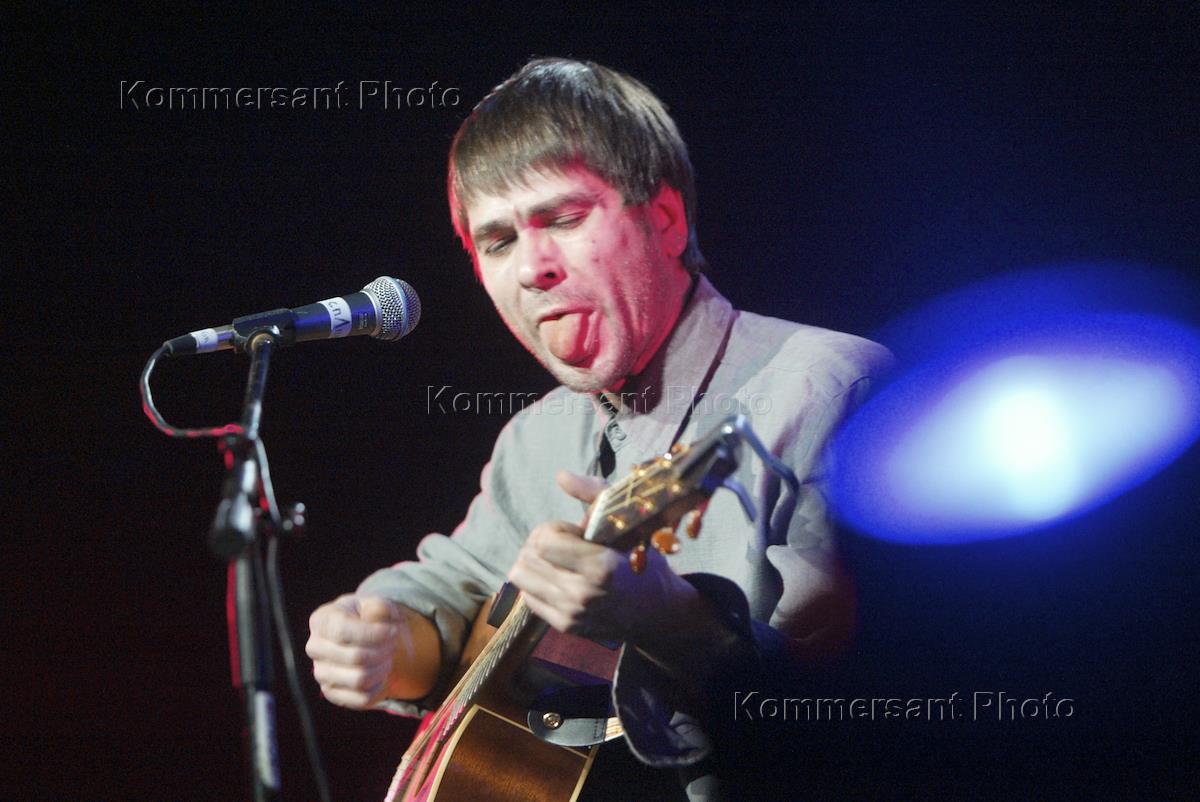 Концерт группы "Сплин" на сцене Московского академического художественного театра (МХАТ) имени Горького. Лидер группы "Сплин" Александр Васильев во время выступления.