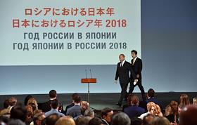 Премьер-министр Японии Синдзо Абэ (слева) и президент России Владимир Путин (справа) на церемонии открытия перекрестного года Японии и России в Государственном академическом Большом театре (ГАБТ).
