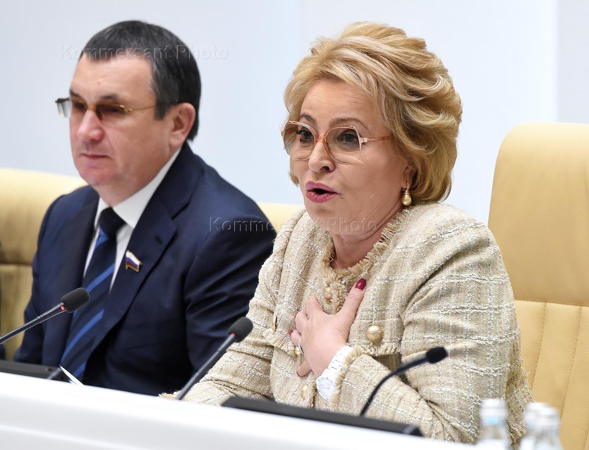 Пленарное заседание Совета Федерации (СФ) России. Председатель СФ России Валентина Матвиенко (справа) и ее первый заместитель Николай Федоров (слева) во время заседания.