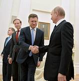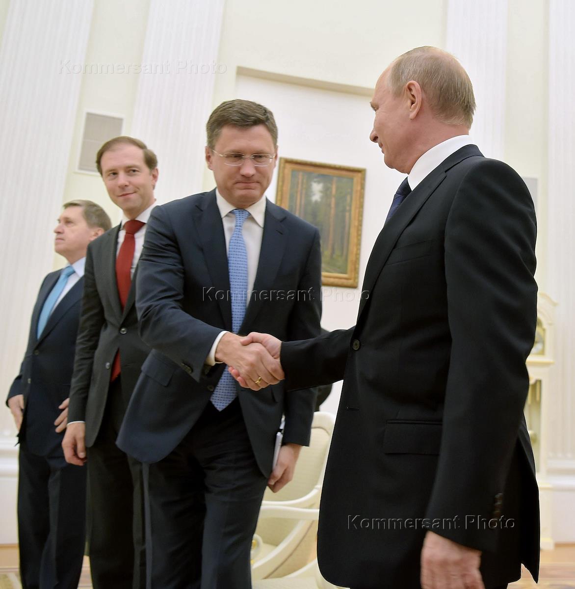 Президент России Владимир Путин встретился с премьер-министром Болгарии Бойко Борисовым в Кремле. Справа налево: президент России Владимир Путин, министр энергетики России Александр Новак, министр промышленно сти и торговли России Денис Мантуров и помощник президента России Юрий Ушаков перед началом встречи.