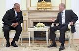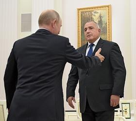 Президент России Владимир Путин (слева) и премьер-министр Болгарии Бойко Борисов (справа) во время встречи в Кремле.
