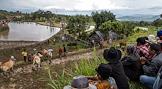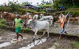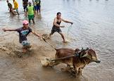 Традиционные гонки на коровах. Место гонок – рисовые поля.